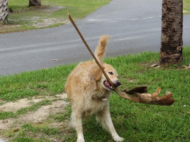 Mason was happy to see us and found a palm frond that had fell during the last bout of rain.