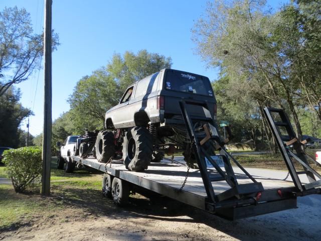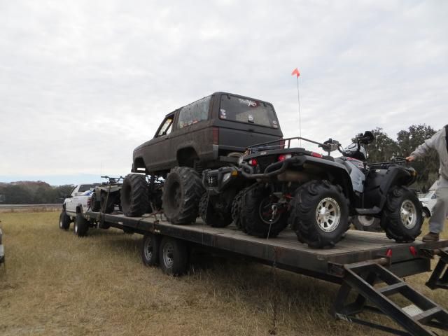 After a bit of rearranging, we toted two mud trucks and six 4-wheelers.